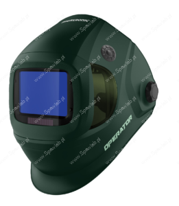 - Zwiększona świadomość sytuacyjna: Unikalną cechą są boczne wizjery o stałym zaciemnieniu DIN 5. Poszerzają one pole widzenia spawacza do $180^{\circ}$, co drastycznie poprawia świadomość sytuacyjną, orientację w przestrzeni i bezpieczeństwo.